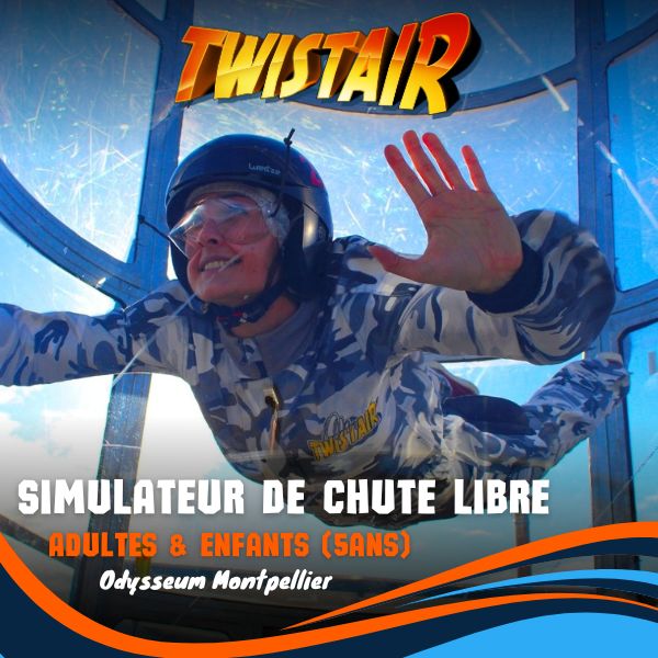 Twist’air est un simulateur de chute libre sur Montpellier Odysseum. Le simulateur recrée les mêmes sensations qu’une chute libre lors d’un saut en parachute. Encadré par des professionnels du parachutisme, venez expérimenter les sensations de la chute libre en toute sécurité et apprenez à voler dans notre simulateur. Activité pour les adultes et les enfants à partir de 5 ans. Activité en groupe, anniversaire ou Team building Les sessions s’effectuent le Mercredi, Samedi & Dimanche, la réservation est fortement conseillée.