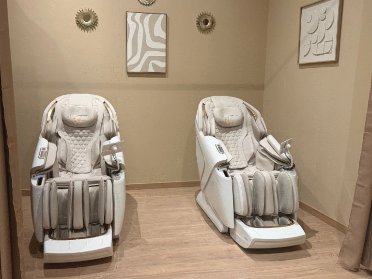 Notre concept repose sur une expérience 100 % sans contact, grâce à des fauteuils massants haut de gamme qui reproduisent avec précision les techniques de massage les plus efficaces : shiatsu, pétrissage, pressions ciblées, étirements…