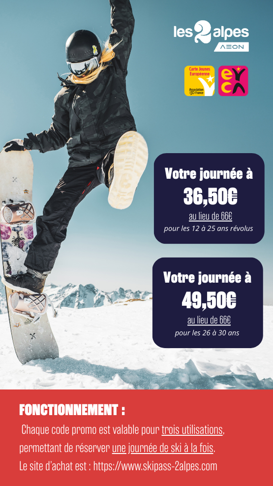 *Codes promo d’une seule utilisation et valables pour la réservation d’une journée de ski sur la saison d’hiver 2025-2026. Vous pouvez demander des codes autant de fois que vous le souhaitez.