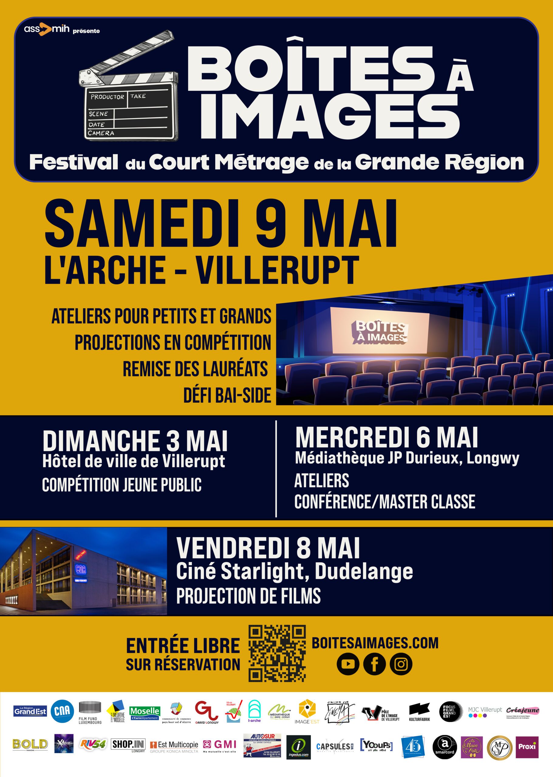 Le Festival Boîtes à Images, organisé par l’association MiH, est un événement dédié au court-métrage dans la Grande Région. Il propose des projections, des rencontres et des actions d’éducation à l’image pour tous les publics, mettant en valeur la création cinématographique locale et émergente.